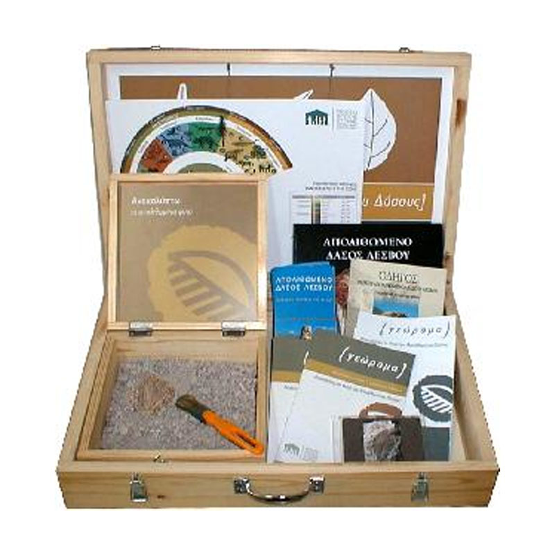 Αντικείμενο της μουσειοσκευής είναι η γνωριμία των μαθητών με το Απολιθωμένο Δάσος Λέσβου, τις διαδικασίες ανασκαφής απολιθωμάτων, με τα φυτά του Απολιθωμένου Δάσους που έζησαν στην ευρύτερη περιοχή της δυτικής Λέσβου πριν 20 εκατομμύρια χρόνια αλλά και τα αντίστοιχα σύγχρονα φυτά. Μέσα από την ενασχόληση των μαθητών με τη μουσειοσκευή επιδιώκεται επίσης η ανάπτυξη της παρατηρητικότητας, της κρίσης τους, η καλλιέργεια της φαντασίας και της δημιουργικότητάς τους καθώς και η ανάπτυξη σεβασμού για το Απολιθωμένο Δάσος Λέσβου. Η μουσειοσκευή απευθύνεται σε μαθητές Πρωτοβάθμιας Εκπαίδευσης και μπορεί να χρησιμοποιηθεί τόσο κατά τη διάρκεια πραγματοποίησης ενός εκπαιδευτικού προγράμματος στο Απολιθωμένο Δάσος και το Μουσείο όσο και στις σχολικές αίθουσες. Η διάρκεια της ενασχόλησης με τη μουσειοσκευή μπορεί να ποικίλει ανάλογα με την πορεία που θα ακολουθήσει ο εκπαιδευτικός, τους στόχους που θέλει να πετύχει και την ηλικία των μαθητών. Η βαλίτσα της μουσειοσκευής περιέχει: A. έντυπο ενημερωτικό υλικό