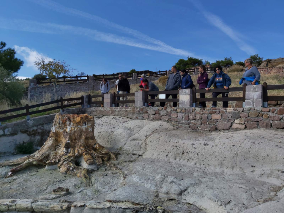 Following the specially designed walking paths, they visited old and new fossil bearing sites, where had the opportunity to see and admire the unique fossils, and to be informed about the works for the protection and promotion of fossil sites, reconstruction of fossil logs and broken fractures and all the conservation works curried out with funding from the North Aegean Regional Operational Program and awarded at the Landscape Awards 2021 in the category Large Scale Landscape Design / Heritage & Culture.