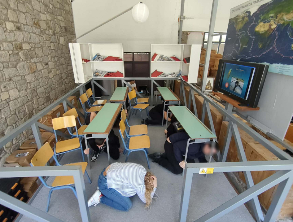 Οι μαθητές επισκέφτηκαν στη συνέχεια τις εγκαταστάσεις του Μουσείου στο Σίγρι, όπου συμμετείχαν στη βιωματική εκπαιδευτική δραστηριότητας προσομοίωσης καταστροφικών σεισμών από όλο τον κόσμο στη σεισμική τράπεζα του Μουσείου. Ο γεωλόγος Λουκάς Σαββέλος τους ενημέρωσε για τον σεισμικό κίνδυνο καί για τις δράσεις αντιμετώπισης του. Οι μαθητές γνώρισαν και εφάρμοσαν τα μέτρα προστασίας κατά τη διάρκεια ενός σεισμού αλλά και ενημερώθηκαν για τις διαδικασίες πρόληψης και προστασίας.