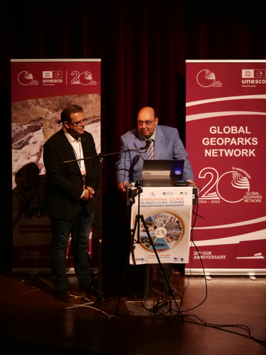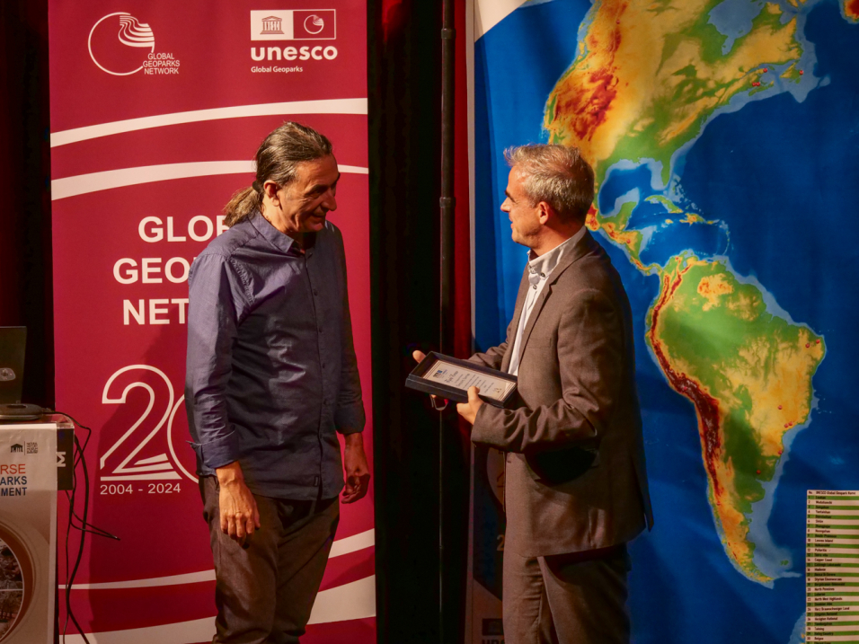Χαιρετισμούς απεύθυναν στη συνέχεια ο κ. Kristof Vandenberghe, Επικεφαλής του Τμήματος Γεωεπιστημών και Παγκόσμιων Γεωπάρκων της UNESCO και ο Δρ. Guy Martini, Πρόεδρος του Συμβουλίου των Παγκόσμιων Γεωπάρκων της UNESCO.