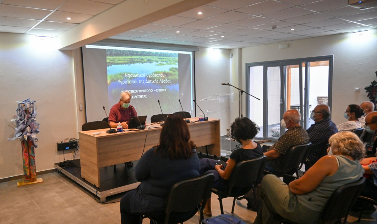 Με επιτυχία και μεγάλο ενδιαφέρον από τους συμμετέχοντες πραγματοποιήθηκε η εκδήλωση «Υγρότοποι της Δυτικής Λέσβου» τη Δευτέρα 26 Ιουλίου 2021 στην κατάμεστη αίθουσα του Πολιτιστικού Κέντρου της Σκάλας Ερεσού. Την εκδήλωση συνδιοργάνωσαν το Μουσείο Φυσικής Ιστορίας Απολιθωμένου Δάσους Λέσβου με την Περιφέρεια Βορείου Αιγαίου και το Δήμο Δυτικής Λέσβου και σε συνεργασία με τον Φορέα Ανάπτυξης και Προβολής Ερεσού.
