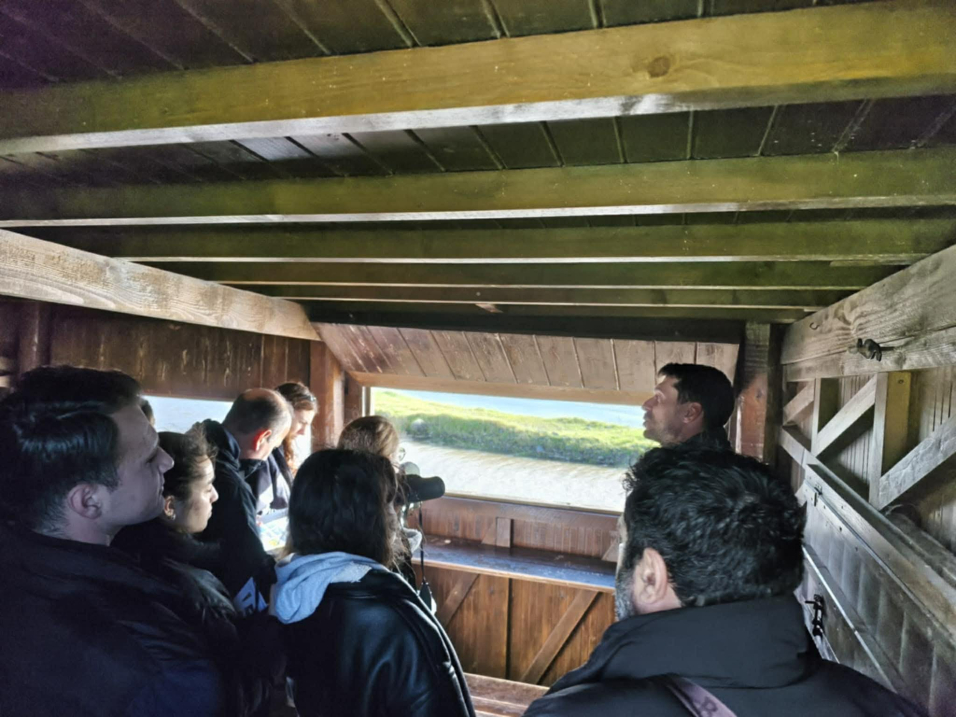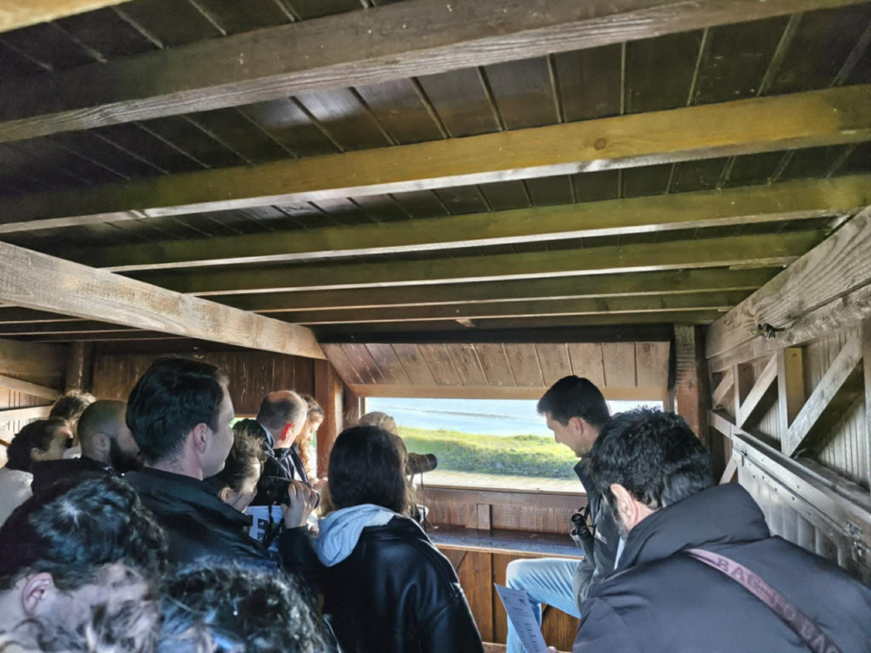 Οι φοιτητές συμμετείχαν αρχικά σε δράση παρατήρησης πουλιών στον υγρότοπο Καλλονής, αποκτώντας πολύτιμη εμπειρία στην αναγνώριση ειδών και στην κατανόηση της οικολογικής σημασίας των υγροτοπικών οικοσυστημάτων. Η δραστηριότητα αυτή συνέβαλε στην ενίσχυση των γνώσεών τους σχετικά με τη βιοποικιλότητα, τη λειτουργία των υγροτόπων και τον σημαντικό τους ρόλο στη διατήρηση της οικολογικής ισορροπίας.