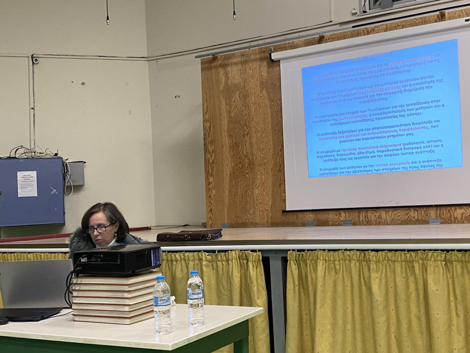 Με μεγάλη συμμετοχή από εκπαιδευτικούς Πρωτοβάθμιας και Δευτεροβάθμιας Εκπαίδευσης της Λέσβου πραγματοποιήθηκε η 1η ενημερωτική συνάντηση με αντικείμενο «Γεωπάρκο Λέσβου: Γεώτοποι και Απολιθωμένο Δάσος. Αξιοποίηση τους για εκπαιδευτικές δραστηριότητες» που πραγματοποιήθηκε την Παρασκευή 16 Φεβρουαρίου 2024 στο 6ο Δημοτικό Σχολείο Μυτιλήνης.