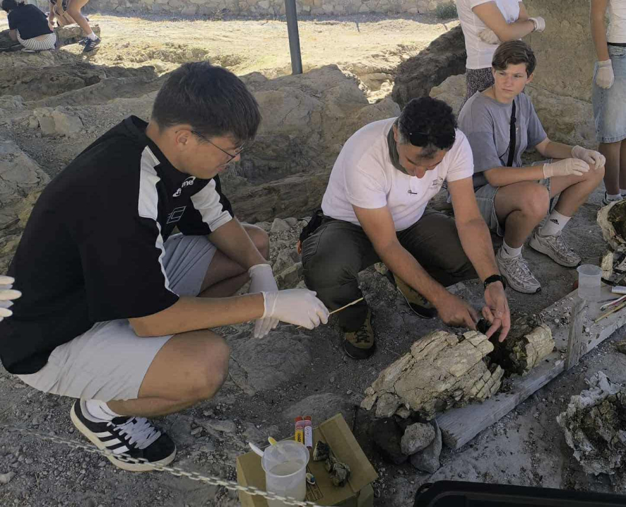 Στη θέση Μπαχαριωτάκη, στις νέες απολιθωματοφόρες θέσεις κατά μήκος του οδικού άξονα Καλλονής-Σιγρίου, οι μαθητές αφού ενημερώθηκαν για τις δράσεις ανασκαφής και συντήρησης των απολιθωμάτων από τον κ. Ν. Γραμμενόπουλο συντηρητή του Μουσείου, συμμετείχαν οι ίδιοι στη βιωματική εκπαιδευτική δράση καθαρισμού και συντήρησης απολιθωμάτων, η οποία ενθουσίασε τους μαθητές καθώς και ήταν η πρώτη φορά που οι μαθητές από τη Γερμανία και την Πολωνία είχαν την ευκαιρία να γνωρίσουν τις ιδιότητες και τα χαρακτηριστικά ενός απολιθώματος μέσα από τη διαδικασία της συντήρησης.