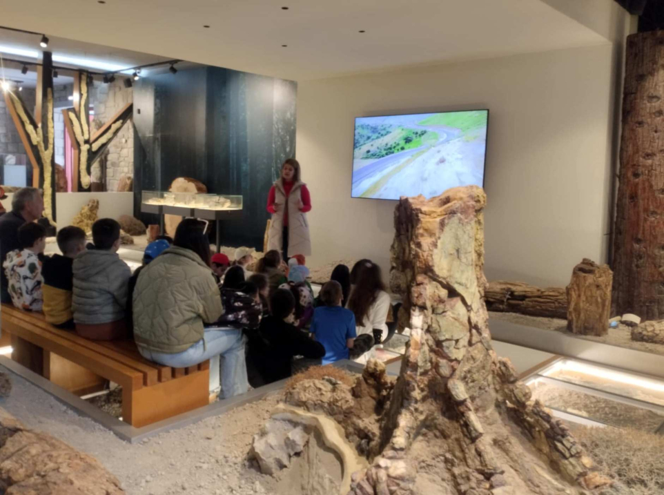 Οι μαθητές κατά την επίσκεψή τους στο Μουσείο Φυσικής Ιστορίας Απολιθωμένου Δάσους Λέσβου περιηγήθηκαν επίσης στους μόνιμους εκθεσιακούς χώρους του Μουσείου Φυσικής Ιστορίας Απολιθωμένου Δάσους Λέσβου, όπου και ενημερώθηκαν για τη σημασία των απολιθωμάτων για την κατανόηση της ιστορίας της γης αλλά και τη σημασία των απολιθωμάτων του Απολιθωμένου Δάσους για την κατανόηση της γεωλογικής εξέλιξης του Αιγαίου. Στην αίθουσα «Η εξέλιξη της ζωής – Απολιθωμένο Δάσος Λέσβου», μοναδικά απολιθώματα αλλά και ειδικές μακέτες με αναπαραστάσεις των οικοσυστημάτων στο παρελθόν γνώρισαν στους μαθητές τη μοναδικότητα του Απολιθωμένου Δάσους, ενώ στην αίθουσα «Εξέλιξη του Αιγαίου» έχουν την ευκαιρία να παρατηρήσουν τον τρόπο δημιουργίας των ηφαιστειακών εκρήξεων και τα υλικά που σκέπασαν τη χλωρίδα και την πανίδα της περιοχής πριν 20 εκατομμύρια χρόνια.