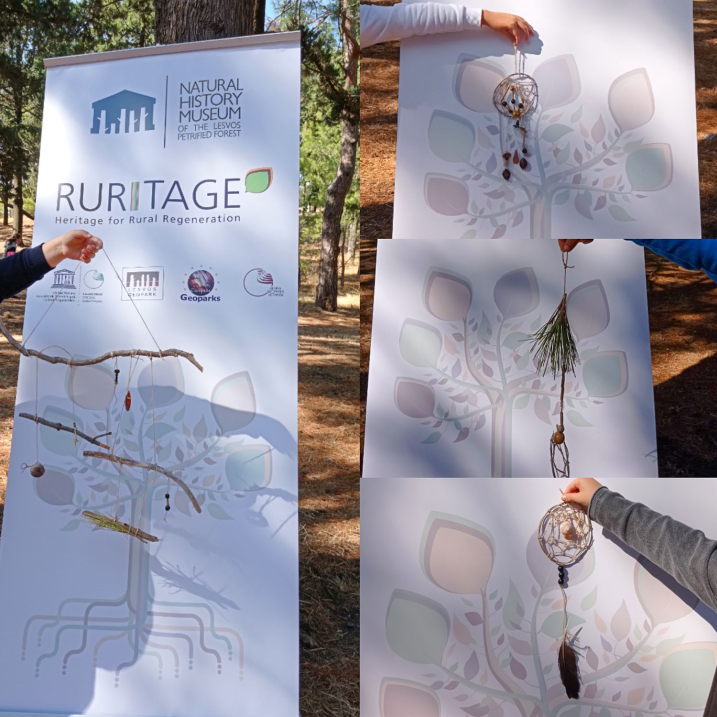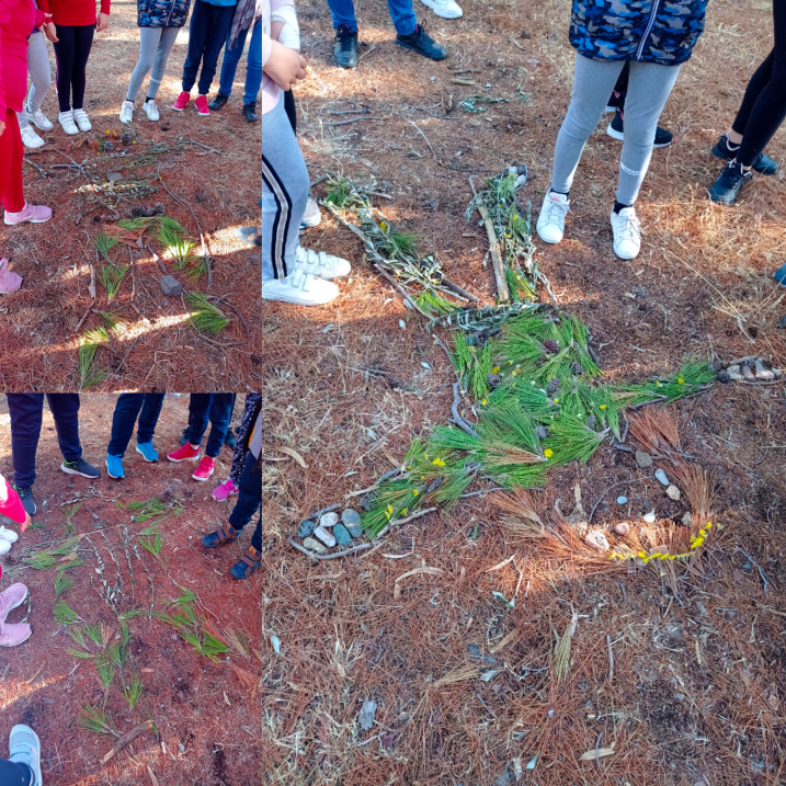 Σε συνεργασία με τα στελέχη και τους μουσειοπαιδαγωγούς του Μουσείου Φυσικής Ιστορίας Απολιθωμένου Δάσους Λέσβου προχώρησαν στην υλοποίηση πρωτότυπων εκπαιδευτικών-καλλιτεχνικών δραστηριοτήτων, εμπνευσμένων από τη φύση και τα οικοσυστήματα της Λέσβου. Ειδικότερα, οι μαθητές εμπνεύστηκαν από το εντυπωσιακό φυσικό περιβάλλον, έπαιξαν παιχνίδια, γνώρισαν τρόπους προστασίας της φύσης και δημιούργησαν τα πιο εντυπωσιακά έργα τέχνης Forest Art-Nature Art με υλικά που συνέλεξαν οι ίδιοι από τη φύση. Δημιούργησαν στο έδαφος εφήμερα έργα τέχνης με γεωμετρικά σχήματα και μοτίβα (mandala), καθώς και ανθρώπινες φιγούρες από φύλλα, κλαδιά, καρπούς, πευκοβελόνες, κουκουνάρια, κατασκεύασαν τα δικά τους κρεμαστά διακοσμητικά (mobile) και ονειροπαγίδες από φυσικά υλικά και έδωσαν ψυχή στα δέντρα, πλάθοντας με πηλό τα πρόσωπα τους. Στο τέλος των εργαστηρίων, έλαβαν οδηγίες για να στήσουν τη δικιά τους έκθεση τέχνης με τις δημιουργίες τους στον χώρο του σχολείου τους.