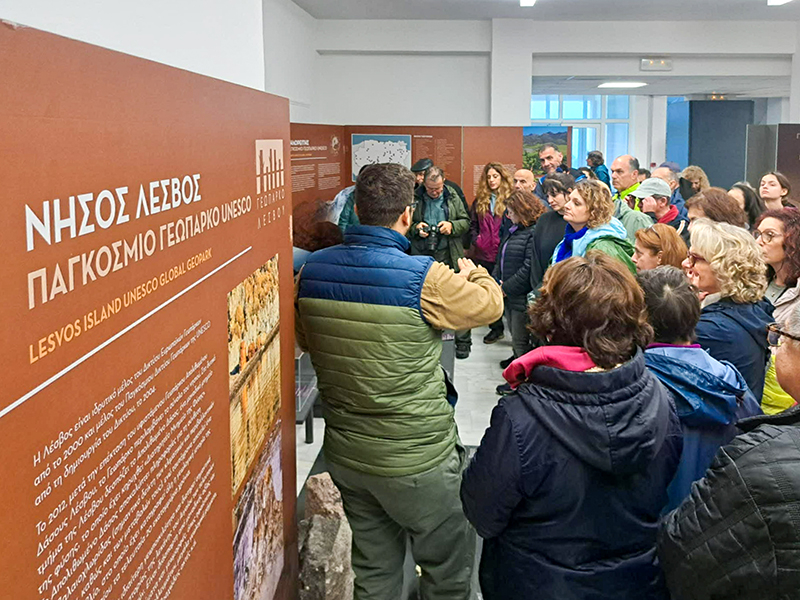 Ιδιαίτερα εντυπωσιασμένοι δήλωσαν από την γνωριμία τους με τους απολιθωμένους κορμούς δένδρων του Απολιθωμένου Δάσους Λέσβου, οι οποίοι σαρώθηκαν από το ωστικό κύμα των μεγάλων εκρήξεων και τις πυροκλαστικές ροές και παρουσιάζονται στην έκθεση αλλά και τα ορυκτά και πετρώματα που μαρτυρούν μοναδικές ιστορίες για τη Λέσβο.