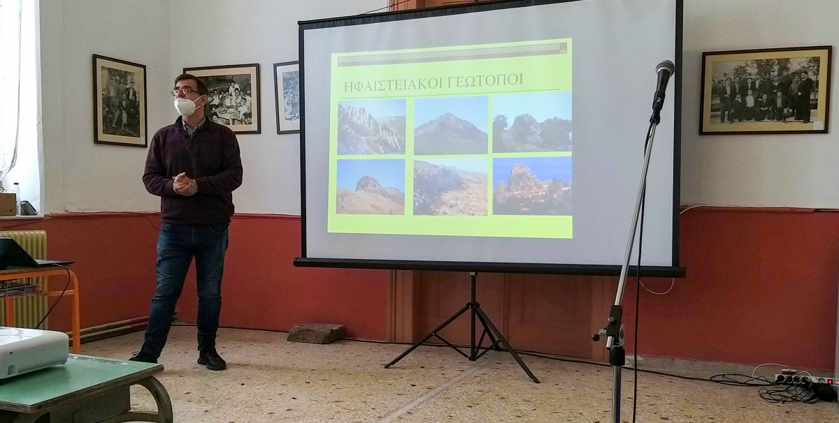 Οι θεωρητικές εισηγήσεις πραγματοποιήθηκαν από τον Νίκο Ζούρο, Καθηγητή Πανεπιστημίου Αιγαίου, Εργαστήριο Εφαρμοσμένης Γεωμορφολογίας και Περιβαλλοντικής Γεωλογίας του Τμήματος Γεωγραφίας – Διευθυντή του Μουσείου Φυσικής Ιστορίας Απολιθωμένου Δάσους Λέσβου, την Ειρήνη Κατσαλήρου, Γεωπόνο – Δρ Εδαφολογίας, Μέλος ΔΕΠ Ιονίου Πανεπιστημίου, τον Άρη Γεράκη, Γεωπόνο – Δρ Ανάπτυξης Πόρων, Μεταδιδακτορικό Ερευνητή Ιονίου Πανεπιστημίου, την Εμμανουέλα Κουμπαρέλλη, Γεωπόνο – Προϊσταμένη του Τμήματος Αγροτικής Οικονομίας Καλλονής, Περιφέρειας Βορείου Αιγαίου, τον Αντώνη Αθηναΐδη εμπειρικό αμπελοκαλλιεργητή, την Βίκυ Κλεφτογιάννη, Βιολόγο, MSc, PhD, Υπεύθυνη Συμμετοχικής Επιστασίας Γης, Πράσινο Ταμείο, την Κάλλια Μηλιορέλη, Περιβαλλοντολόγο – Εθελόντρια, τον Μιχάλη Μαρμάρου, μέλος της Κοιν.Σ.Επ. Ηφαίστειο Ανεμώτιας και την Μαρία Τζαννέτου, Γεωπόνο.