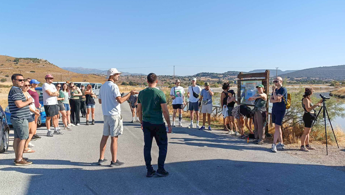 Οι φοιτητές επισκέφτηκαν τον υγροβιότοπο της Καλλονής όπου είχαν την ευκαιρία να ενημερωθούν για την γεωλογική ιστορία της περιοχής, τη βιοποικιλότητα και τις δράσεις του Κέντρου Περιβαλλοντικής Ενημέρωσης Καλλονής. Παράλληλα, συμμετείχαν σε δραστηριότητα παρατήρησης πουλιών όπου γνώρισαν μοναδικά πουλιά για την περιοχή του Αιγαίου που επιλέγουν τον υγροβιότοπο της Καλλονής ως χώρο παραμονής τους.