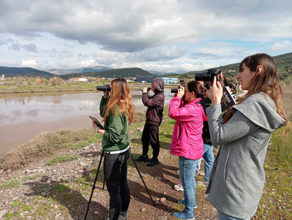 Στον υγροβιότοπο του Κόλπου της Καλλονής, τις Αλυκές, οι μαθητές γνώρισαν και είδαν από κοντά διάφορα είδη πτηνών τα οποία βρίσκονται στο νησί της Λέσβου μόνιμα, αλλά και πολλά τα οποία βρίσκονται εδώ την συγκεκριμένη περίοδο της μετανάστευσης. Η κα. Κακάμπουρα Βασιλική, βιολόγος σύστησε στους μαθητές την εξίσου σημαντική χλωρίδα του νησιού μας και με ιδιαίτερη έμφαση αυτή των υγροτόπων. Με τη χρήση ειδικού εξοπλισμού, όπως τηλεσκόπια και ατομικά κυάλια, οι μαθητές συμμετείχαν στην εκπαιδευτική δράση της ορνιθοπαρατήρησης.
