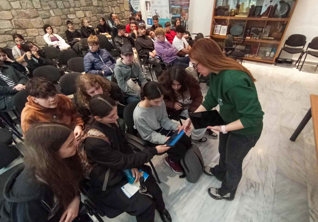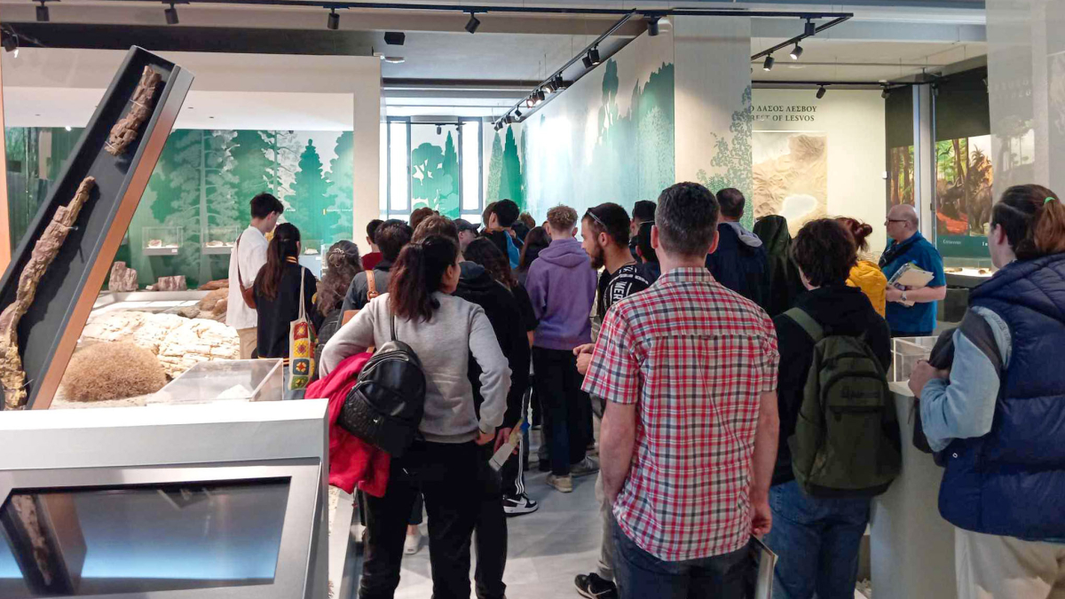 Περιηγήθηκαν στους μόνιμους εκθεσιακούς χώρους του Μουσείου και μέσα από τις εκθεσιακές ενότητες γνώρισαν την εξέλιξη της ζωής στο πέρασμα του γεωλογικού χρόνου, ενώ ιδιαίτερη αναφορά έγινε για τα ευρήματα του Απολιθωμένου Δάσους και τη σημασία τους στην κατανόηση της γεωλογικής ιστορίας και εξέλιξης του Αιγαίου και της Λέσβου. Ακολούθησε η ενημέρωσή τους για τα γεωλογικά φαινόμενα που σχετίζονται με τη δημιουργία του Απολιθωμένου Δάσους, γνώρισαν τις ειδικές εκθεσιακές κατασκευές, το χαρτογραφικό υλικό και μοναδικά εκθέματα ορυκτών και πετρωμάτων.