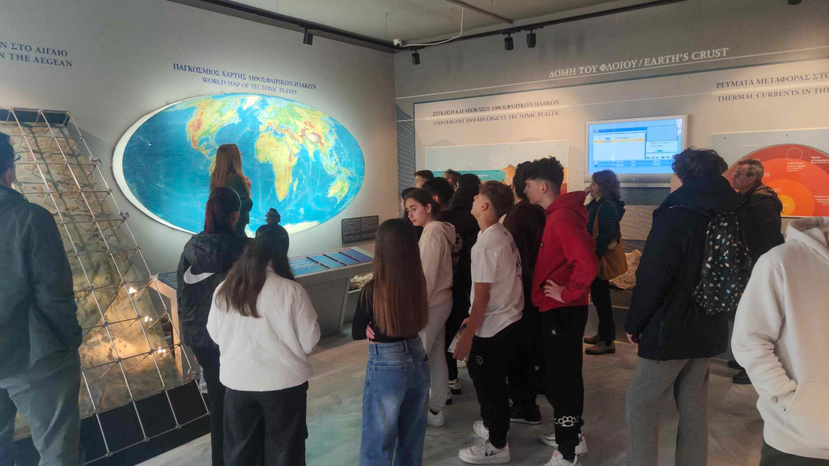 Ακολούθησε η περιήγηση στους μόνιμους εκθεσιακούς χώρους του Μουσείου, όπου μέσα από τις μακέτες και τα εκθέματά του γνώρισαν την εξέλιξη της ζωής στο πέρασμα του γεωλογικού χρόνου, ενώ ιδιαίτερη αναφορά έγινε για τα ευρήματα του Απολιθωμένου Δάσους και τη σημασία τους στην κατανόηση της γεωλογικής ιστορίας και εξέλιξης του Αιγαίου και της Λέσβου. Η ενημέρωσή τους, συνεχίστηκε γνωρίζοντας τα γεωλογικά φαινόμενα που σχετίζονται με τη δημιουργία του Απολιθωμένου Δάσους, μαθαίνοντας τις μακέτες, το χαρτογραφικό υλικό και μοναδικά εκθέματα ορυκτών και πετρωμάτων τα οποία αξιοποιούνται στα πλαίσια εκπαιδευτικών προγραμμάτων μαθητών.