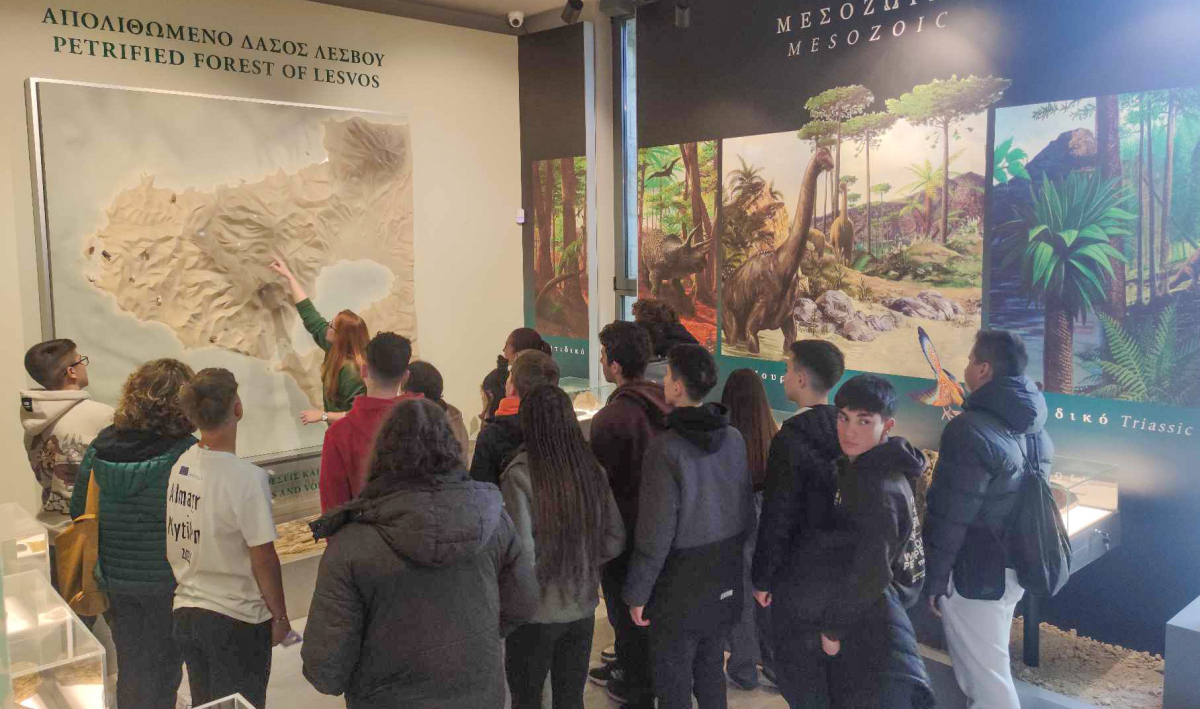 Οι μαθητές επισκέφθηκαν το Μουσείο Φυσικής Ιστορίας Απολιθωμένου Δάσους Λέσβου, όπου ενημερώθηκαν για τη δημιουργία του Απολιθωμένου Δάσους και τα στοιχεία που το καθιστούν μοναδικό μνημείο σε παγκόσμιο επίπεδο.