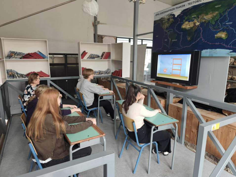 Στη συνέχεια οι μαθητές συμμετείχαν στη βιωματική εκπαιδευτική δραστηριότητας προσομοίωσης καταστροφικών σεισμών από όλο τον κόσμο στη σεισμική τράπεζα του Μουσείου. Ο γεωλόγος Λουκάς Σαββέλος τους ενημέρωσε για τον σεισμικό κίνδυνο καί για τις δράσεις αντιμετώπισης του. Οι μαθητές γνώρισαν και εφάρμοσαν τα μέτρα προστασίας κατά τη διάρκεια ενός σεισμού αλλά και ενημερώθηκαν για τις διαδικασίες πρόληψης και προστασίας.