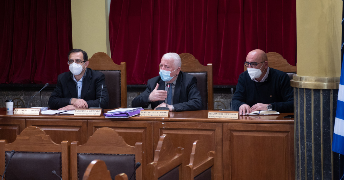 Στη συνέντευξη τύπου παρίστανται ο Εντεταλμένος Περιφερειακός Σύμβουλος σε θέματα Περιβάλλοντος κ. Ν. Καρασάββας, ο Εκτελεστικός Γραμματέας της Περιφέρειας κ. Απ. Αλατζάς, ο Προϊστάμενος της Διεύθυνσης Περιβάλλοντος & Χωρικού Σχεδιασμού κ. Γ. Λεμονός και οι Ειδικοί Σύμβουλοι κ. Μ. Πολυπαθέλλης και κ. Μ. Ταμβακέλλης.