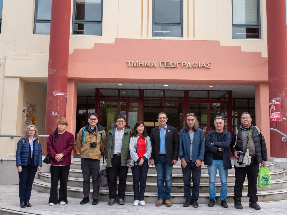 Η αντιπροσωπεία από το Γεωπάρκο San’in Kaigan επισκέφτηκε αρχικά το Τμήμα Γεωγραφίας του Πανεπιστημίου Αιγαίου όπου αρχικά περιηγήθηκαν από τους Καθηγητές Νίκο Ζούρο και Νίκο Σουλακέλλη στην έκθεση Χαρτογραφικών Εφαρμογών αφιερωμένη στους Γεώτοπους της Λέσβου.