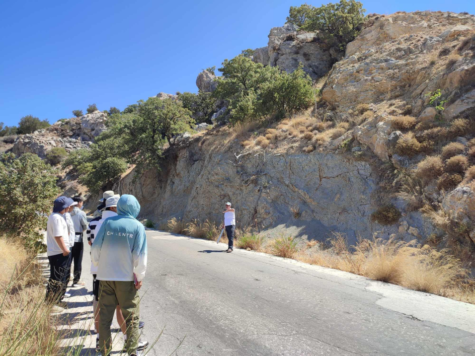 Οι φοιτητές συμμετείχαν σε ασκήσεις υπαίθρου με στόχο τη γνωριμία με την ηφαιστειότητα και τους ηφαιστειακούς γεώτοπους της Λέσβου αλλά και τα μεγάλα ρήγματα του νησιού.